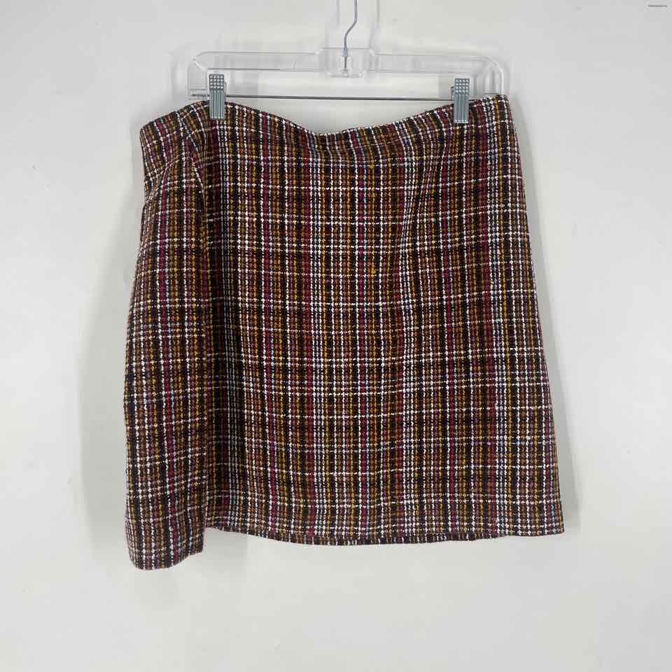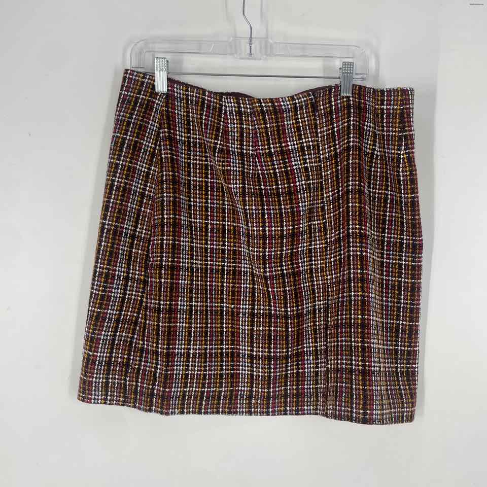Size 12 LOFT Burgundy Yellow Plaid Skirt